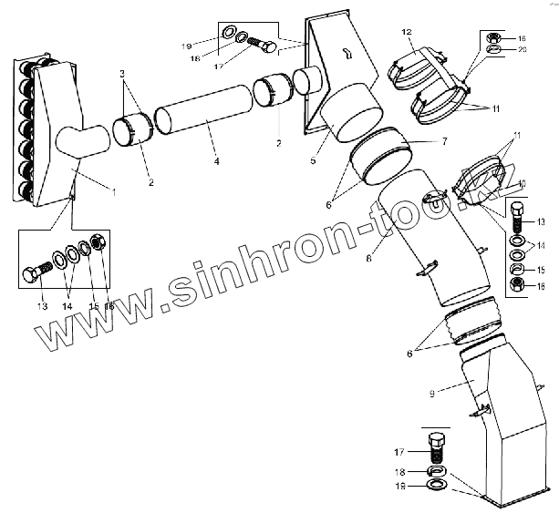 Каталог запасных частей к технике: БелАЗ-75306. Установка всасывающих воздухопроводов