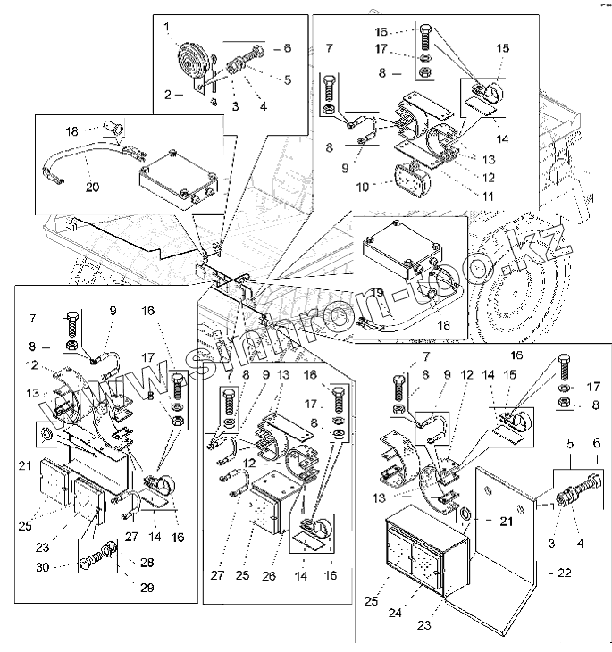 Каталог запасных частей к технике: БелАЗ-75306. Установка задних фонарей