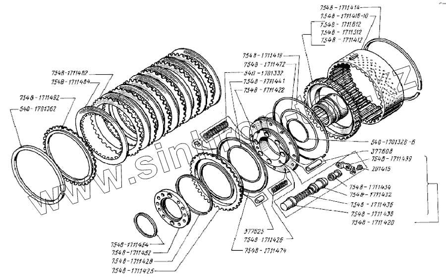 Каталог запасных частей к технике: БелАЗ-7540. Фрикцион пятиступенчатой гидромеханической передачи