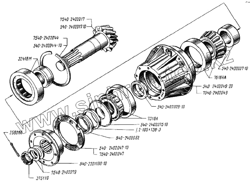 Каталог запасных частей к технике: БелАЗ-7540. Ведущая шестерня главной передачи