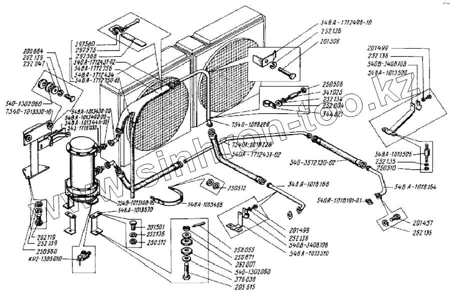 Каталог запасных частей к технике: БелАЗ-7540. Водомасляный теплообменник и маслопроводы