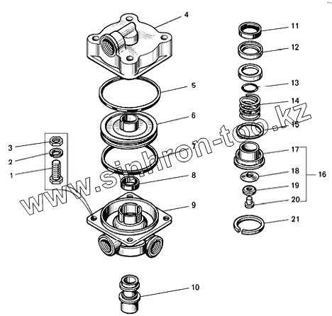 Каталог запасных частей к технике: БелАЗ-7540А. Клапан ускорительный БелАЗ-7540А, БелАЗ-7540В