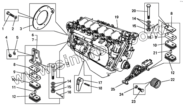 Каталог запасных частей к технике: БелАЗ-7540А. Установка двигателя на самосвале БелАЗ-7540А