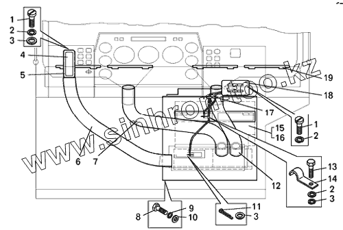 Каталог запасных частей к технике: БелАЗ-7540B. Установка отопителя кабины БелАЗ-7540А, БелАЗ-7540В