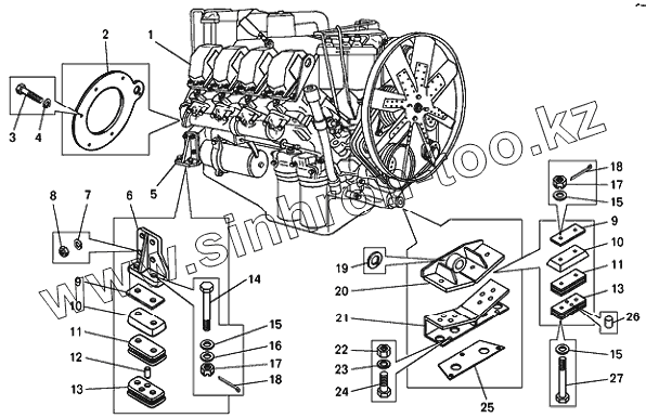 Каталог запасных частей к технике: БелАЗ-7540C. Установка двигателя на самосвале БелАЗ-7540С