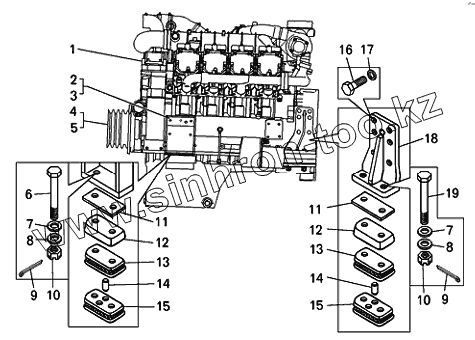 Каталог запасных частей к технике: БелАЗ-7540D. Установка двигателя на самосвале БелАЗ-7540D