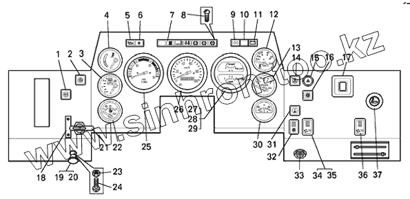 Каталог запасных частей к технике: БелАЗ-7540K. Панель приборов на самосвале БелАЗ-7540D