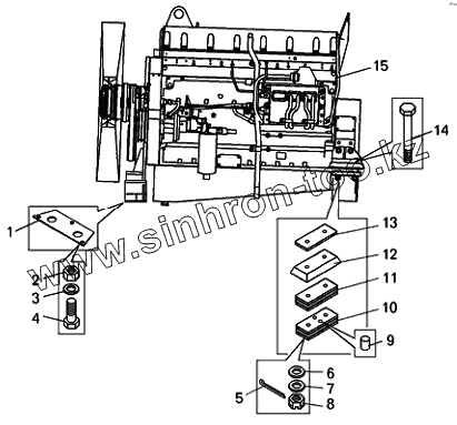 Каталог запасных частей к технике: БелАЗ-7540K. Установка двигателя на самосвале БелАЗ-7540К