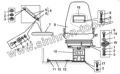 Каталог запасных частей к технике: БелАЗ-7540K. Установка сидений БелАЗ-7540А, БелАЗ-7540В