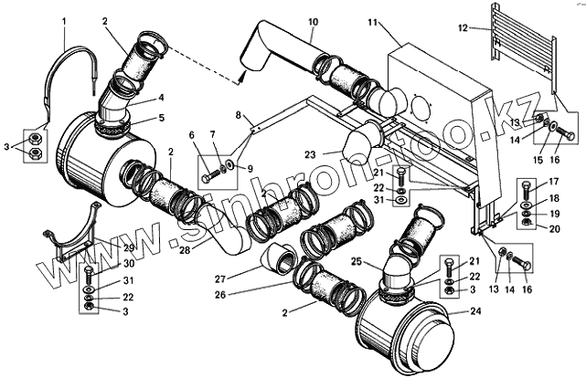Каталог запасных частей к технике: БелАЗ-7540K. Установка воздушных фильтров БелАЗ-7540А, 7540B