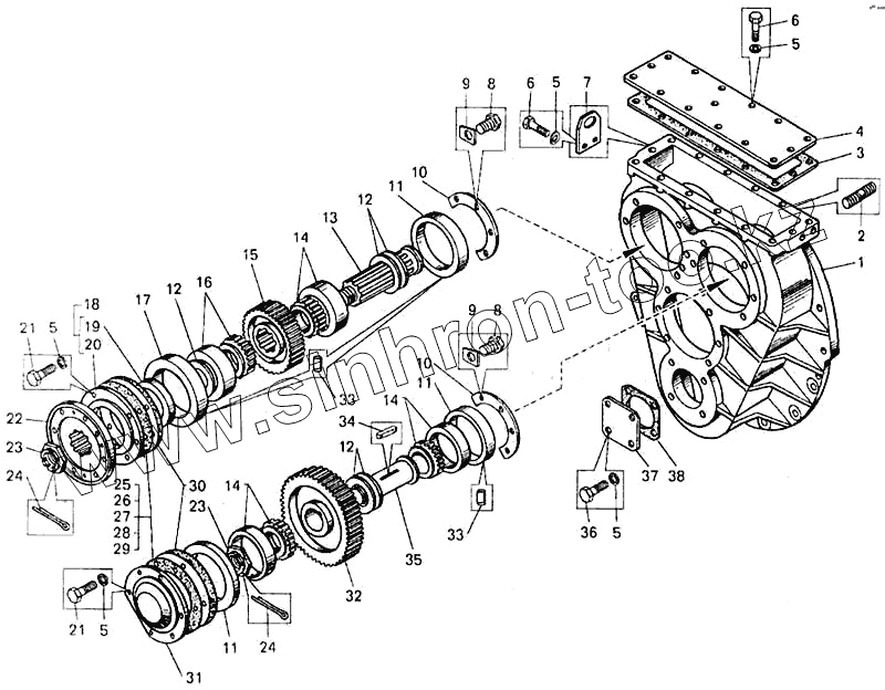 Каталог запасных частей к технике: БелАЗ-7547. Картер, ведущий и промежуточный валы согласующей передачи