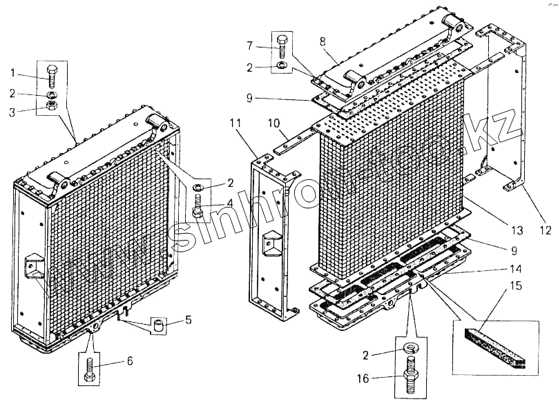 Каталог запасных частей к технике: БелАЗ-7547. Радиатор водяной (ширина 800 мм)