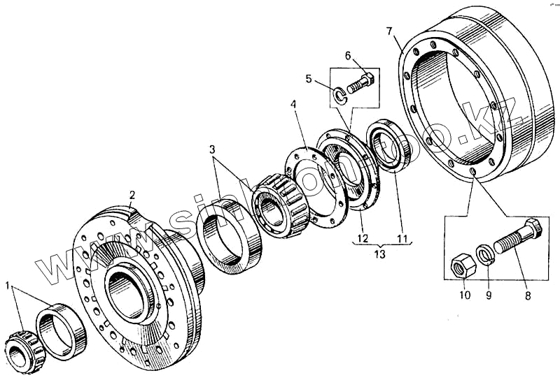 Каталог запасных частей к технике: БелАЗ-7547. Ступица переднего колеса
