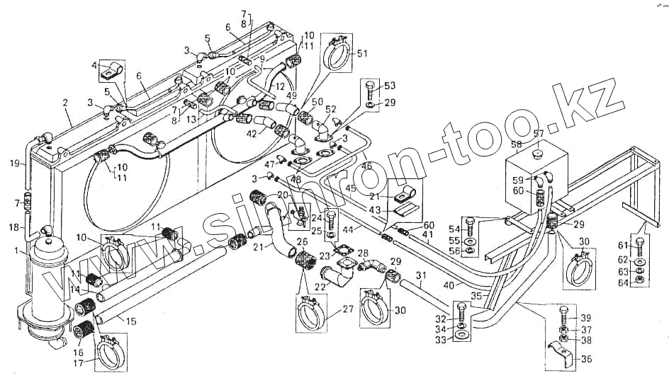 Каталог запасных частей к технике: БелАЗ-7547. Трубопроводы системы охлаждения на самосвале БелАЗ-7547