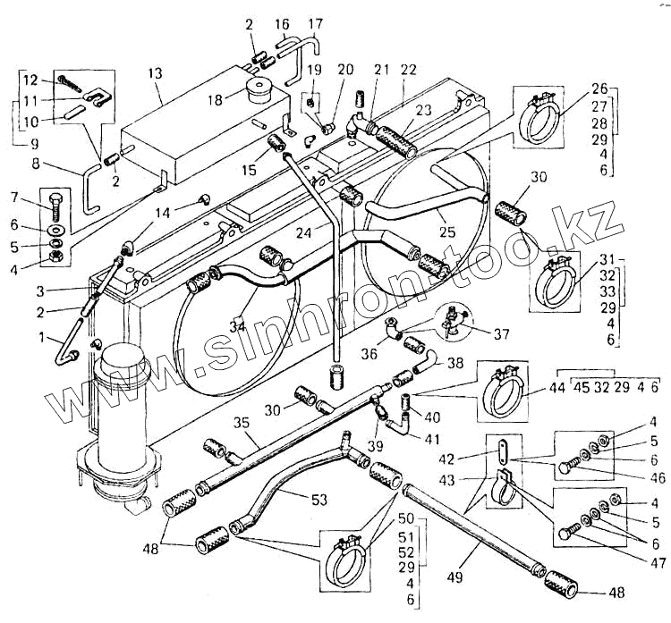 Каталог запасных частей к технике: БелАЗ-7547. Трубопроводы системы охлаждения на самосвале БелАЗ-7547