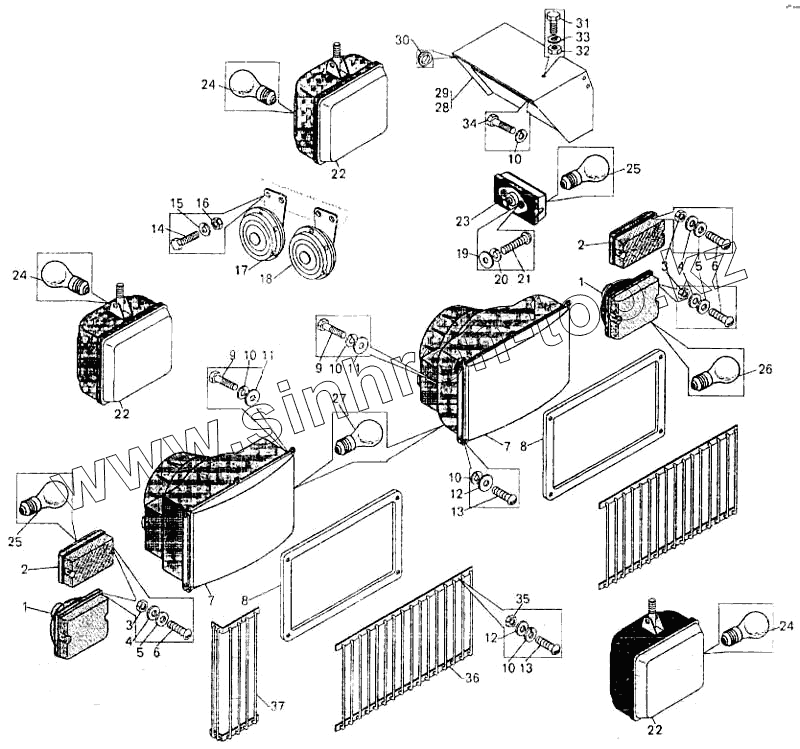 Каталог запасных частей к технике: БелАЗ-7547. Установка фар, подфарников и звуковых сигналов