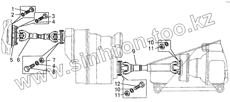 Каталог запасных частей к технике: БелАЗ-7547. Установка карданных валов на самосвале БелАЗ-7547