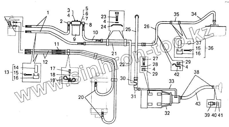 Каталог запасных частей к технике: БелАЗ-7547. Установка трубопроводов рулевого управления