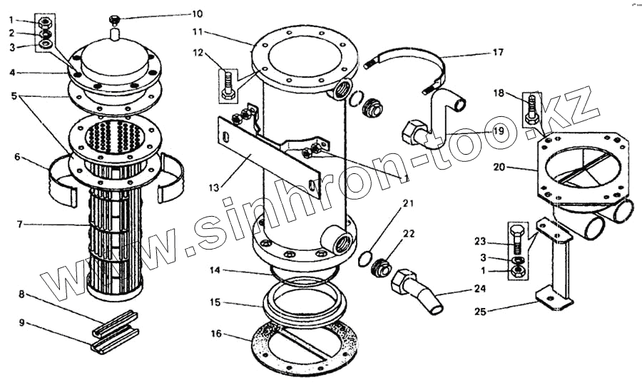 Каталог запасных частей к технике: БелАЗ-7548А. Теплообменник водомасляный (1.4)