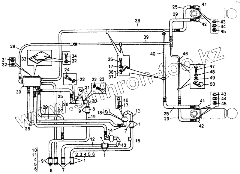 Каталог запасных частей к технике: БелАЗ-7548А. Трубопроводы опрокидывающего механизма самосвала БелАЗ-75483