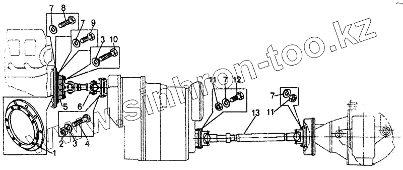 Каталог запасных частей к технике: БелАЗ-7548А. Установка карданных валов