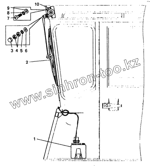 Каталог запасных частей к технике: БелАЗ-7548А. Установка стеклоочистителя и стеклоомывателя