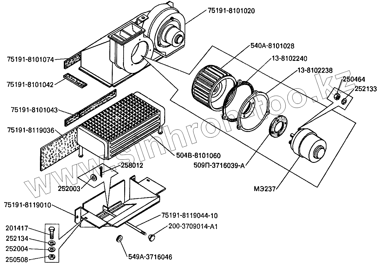 Каталог запасных частей к технике: БелАЗ-7549. Отопитель кабины