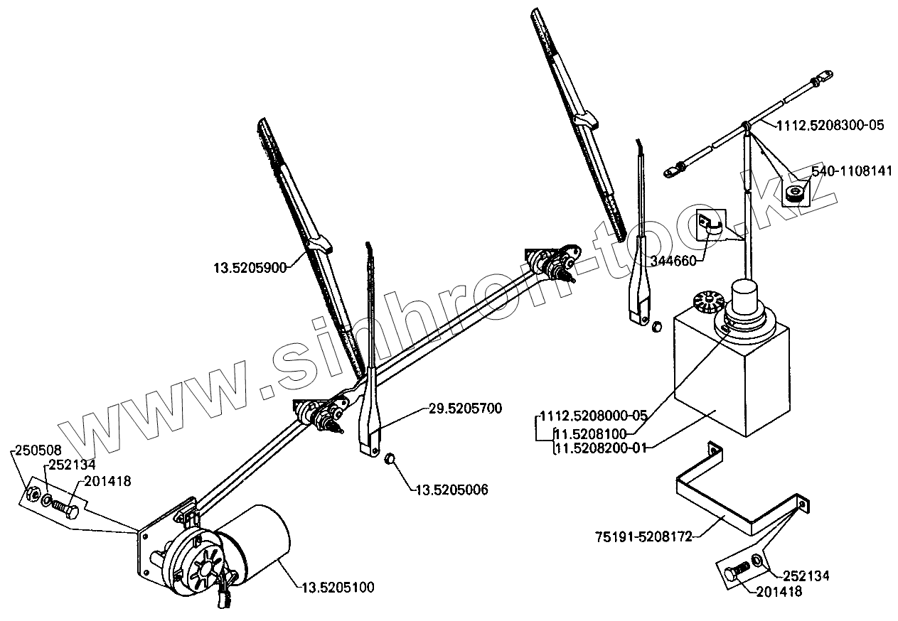 Каталог запасных частей к технике: БелАЗ-7549. Стеклоочиститель и стеклоомыватель