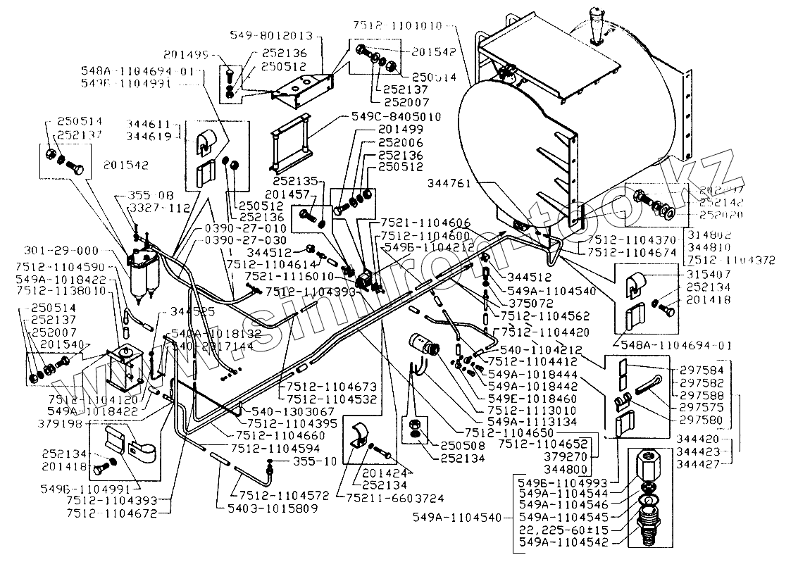 Каталог запасных частей к технике: БелАЗ-7549. Топливные трубопроводы БелАЗ-7512,75123