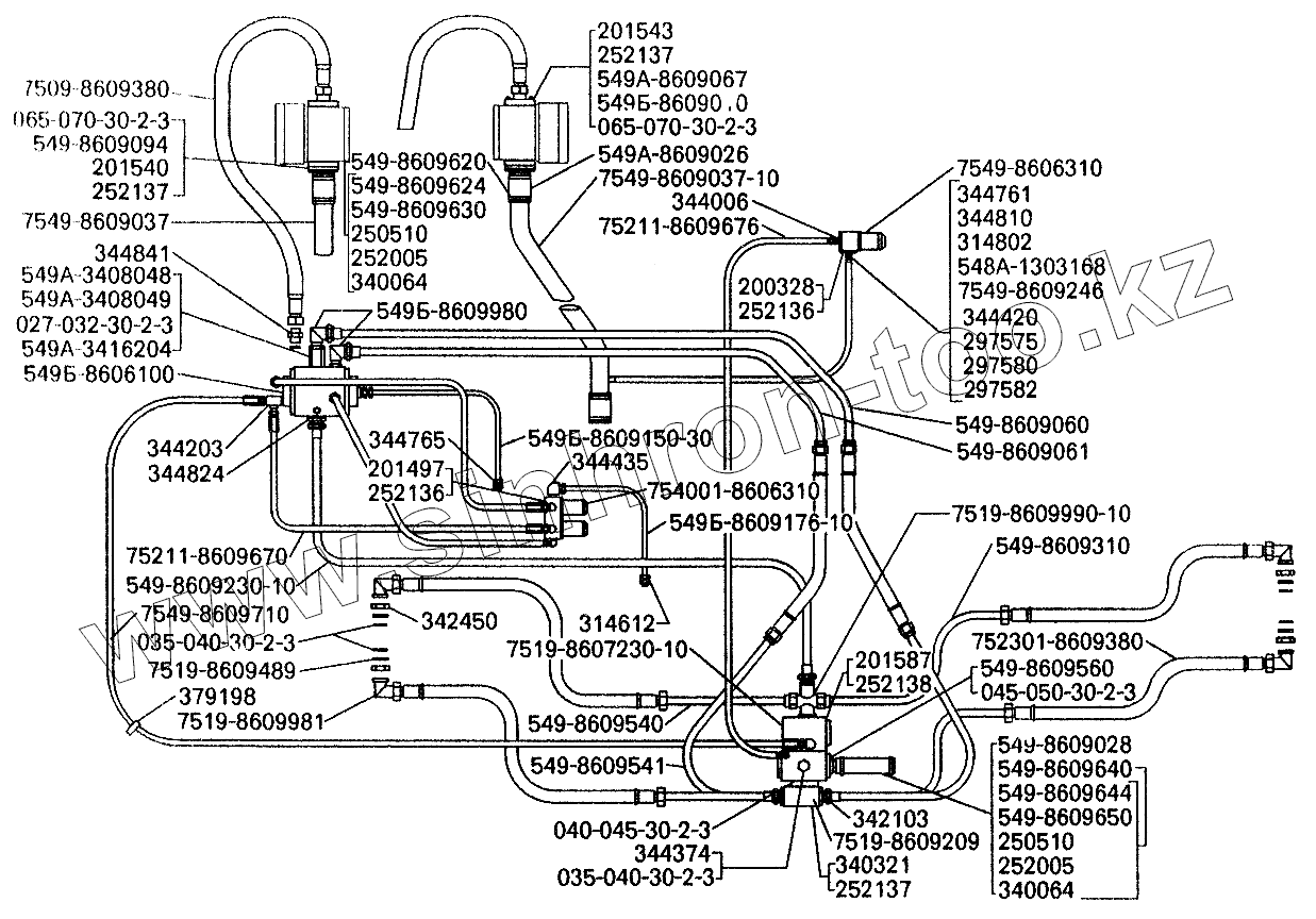 Каталог запасных частей к технике: БелАЗ-7549. Трубопроводы опрокидывающего механизма БелАЗ-7549