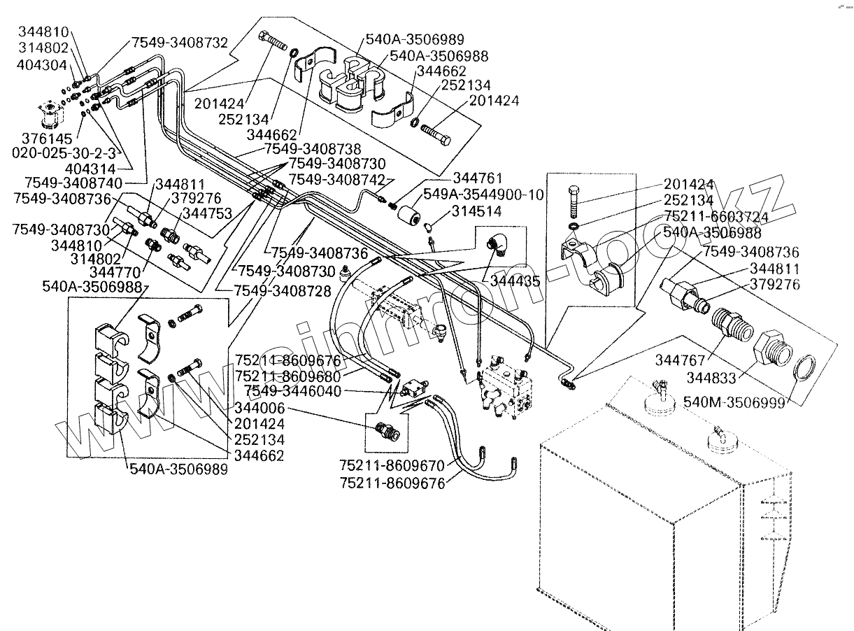 Каталог запасных частей к технике: БелАЗ-7549. Трубопроводы управления гидрораспределителем БелАЗ-7549