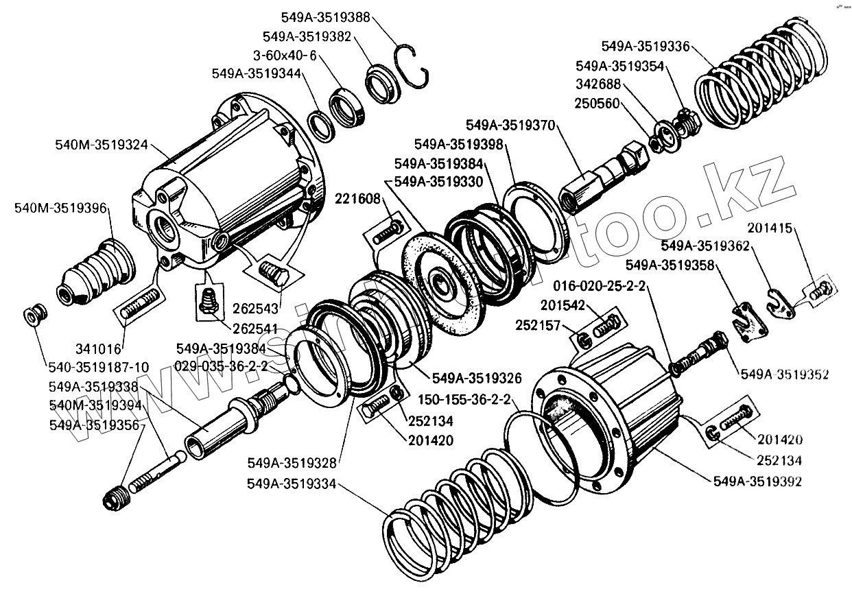 Каталог запасных частей к технике: БелАЗ-7549. Цилиндр стояночного тормоза