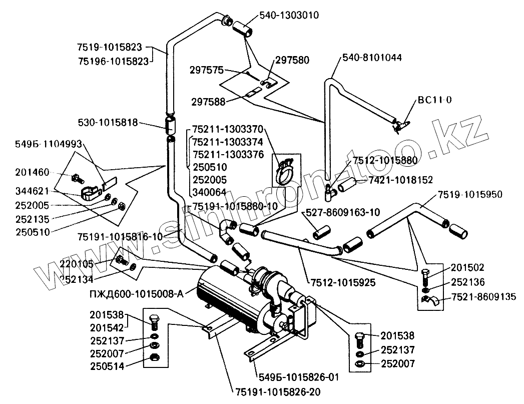 Каталог запасных частей к технике: БелАЗ-7549. Установка предпускового подогревателя на БелАЗ-7512, 75123