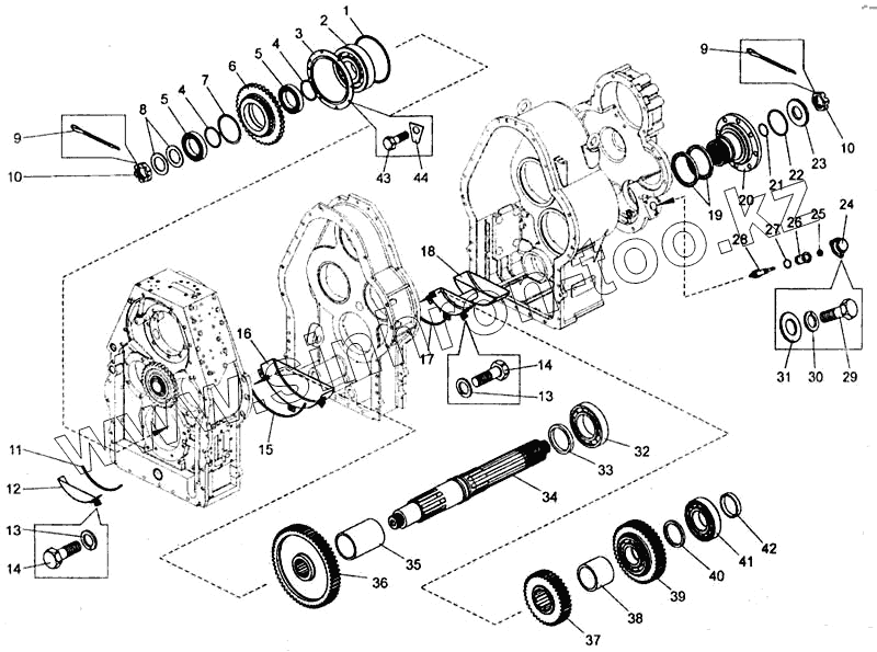 Каталог запасных частей к технике: БелАЗ-7555A. Коробка передач. Установка выходного вала