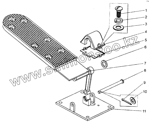 Каталог запасных частей к технике: БелАЗ-7555A. Педаль привода подачи топлива БелАЗ-7555В