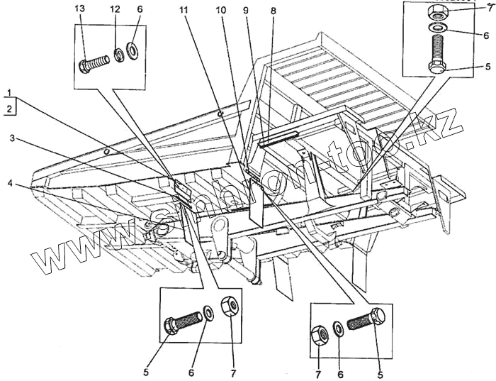 Каталог запасных частей к технике: БелАЗ-7555A. Установка брызговиков