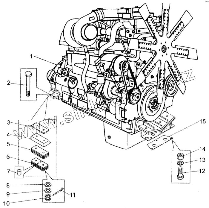 Каталог запасных частей к технике: БелАЗ-7555A. Установка двигателя на самосвал БелАЗ-7555В