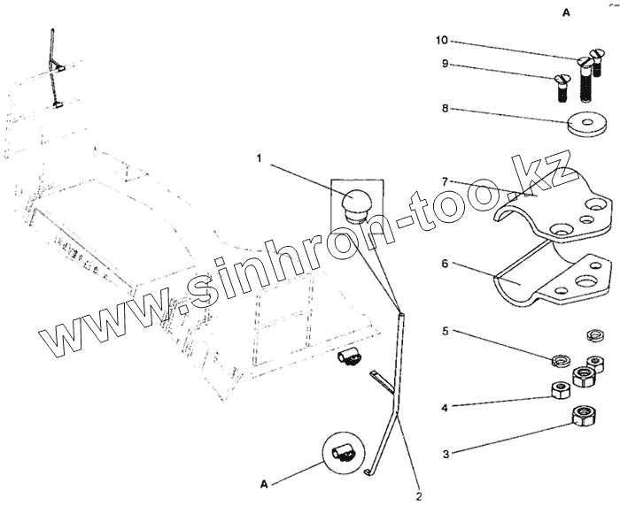 Каталог запасных частей к технике: БелАЗ-7555A. Установка кронштейна зеркала заднего вида