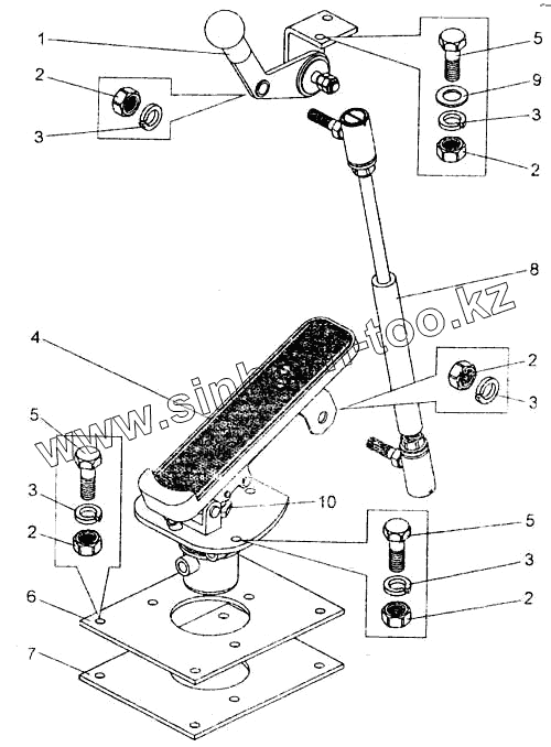 Каталог запасных частей к технике: БелАЗ-7555A. Установка педали управления подачей топлива БелАЗ-7555А