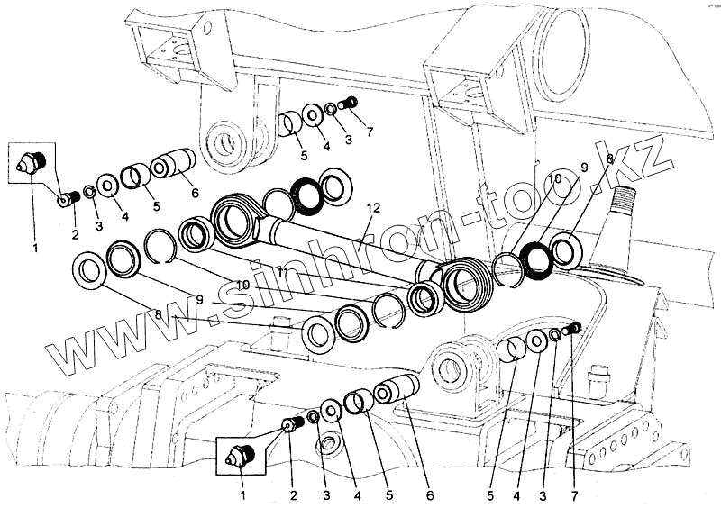 Каталог запасных частей к технике: БелАЗ-7555A. Установка поперечной штанги задней подвески