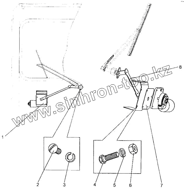 Каталог запасных частей к технике: БелАЗ-7555A. Установка стеклоочистителя