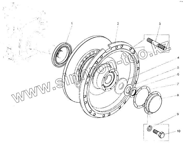 Каталог запасных частей к технике: БелАЗ-7555A. Установка ступицы переднего колеса