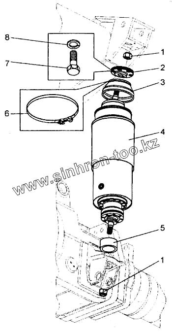 Каталог запасных частей к технике: БелАЗ-7555A. Установка цилиндров задней подвески