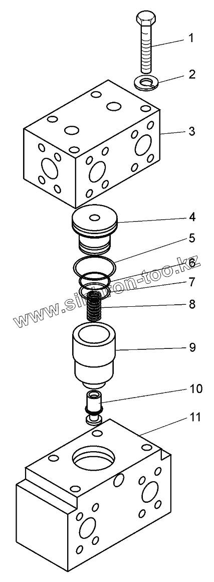 Каталог запасных частей к технике: БелАЗ-75600. Клапан управления опрокидывающим механизмом 75600-8607230