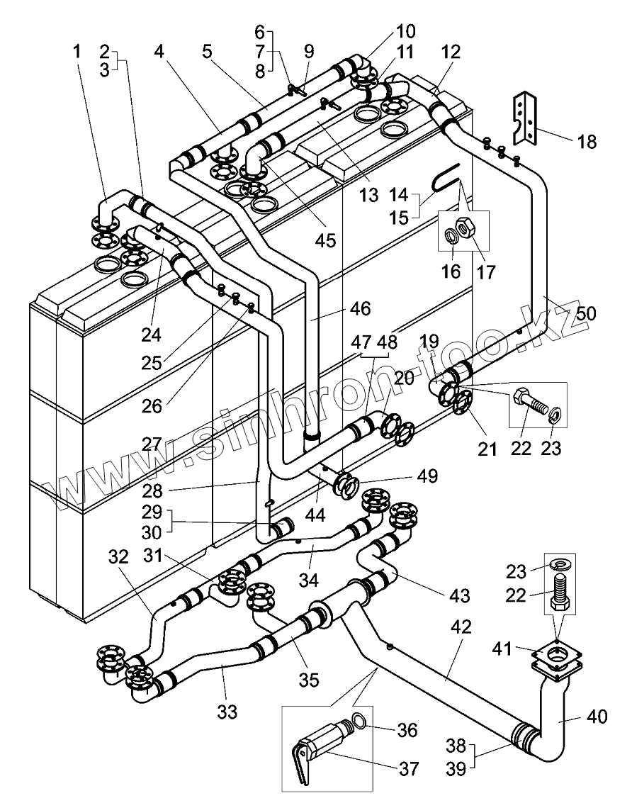 Каталог запасных частей к технике: БелАЗ-75600. Трубопроводы системы охлаждения двигателя 75600-1300010