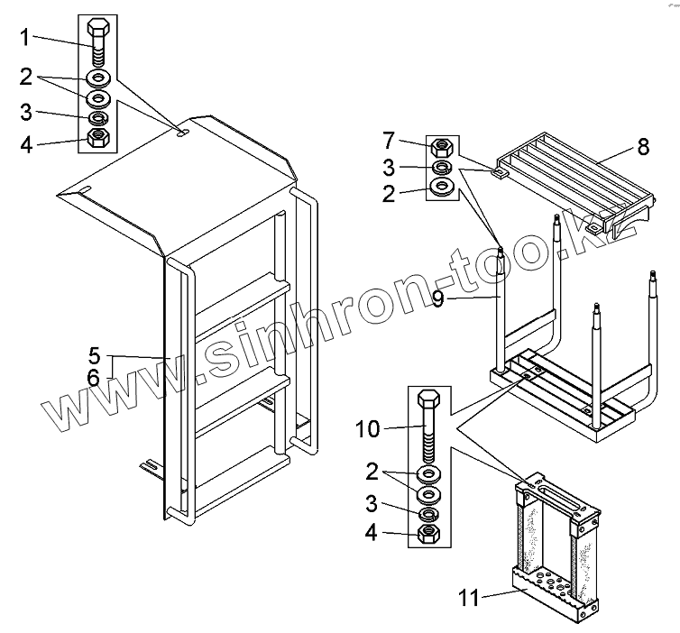 Каталог запасных частей к технике: БелАЗ-75600. Установка площадок моторного отсека 75600-8012003