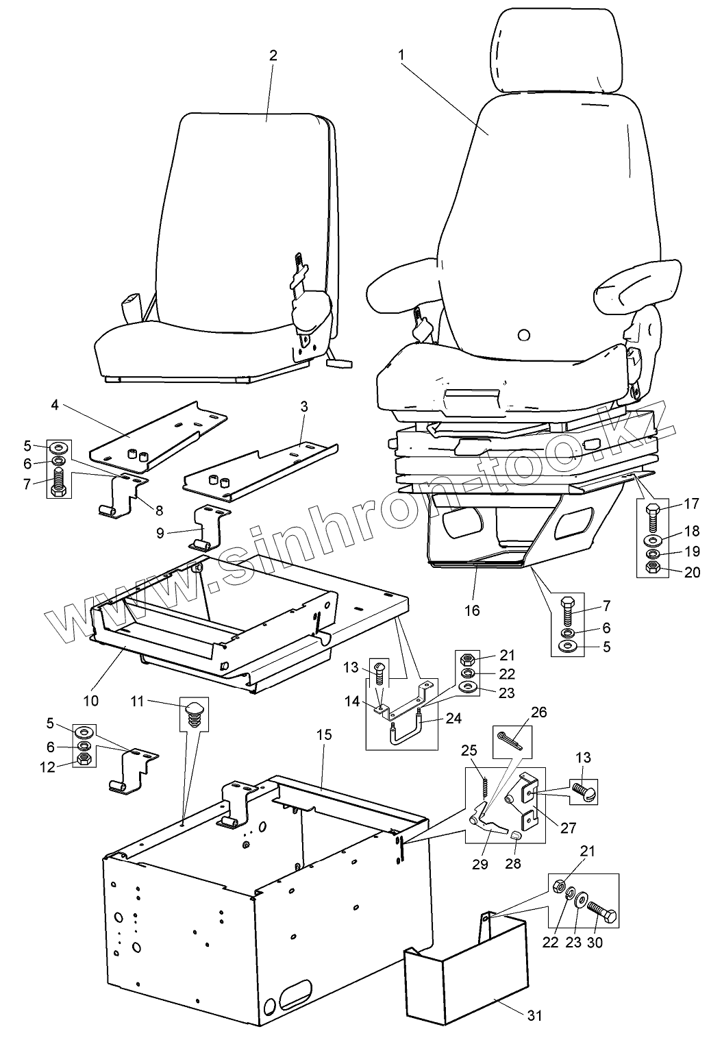 Каталог запасных частей к технике: БелАЗ-75600. Установка сидений 75131-6800006-50