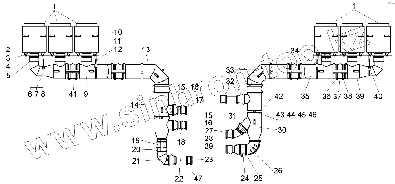 Каталог запасных частей к технике: БелАЗ-75600. Установка воздушных фильтров 75600-1100005-10