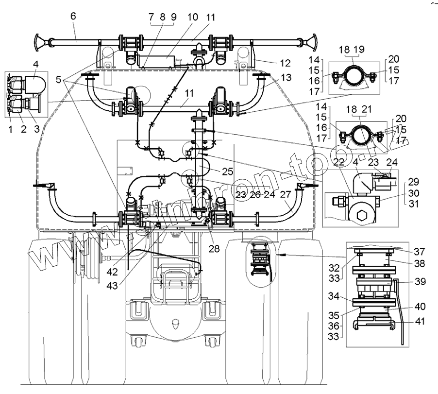 Каталог запасных частей к технике: БелАЗ-76470. Установка трубопроводов поливооросительной системы.