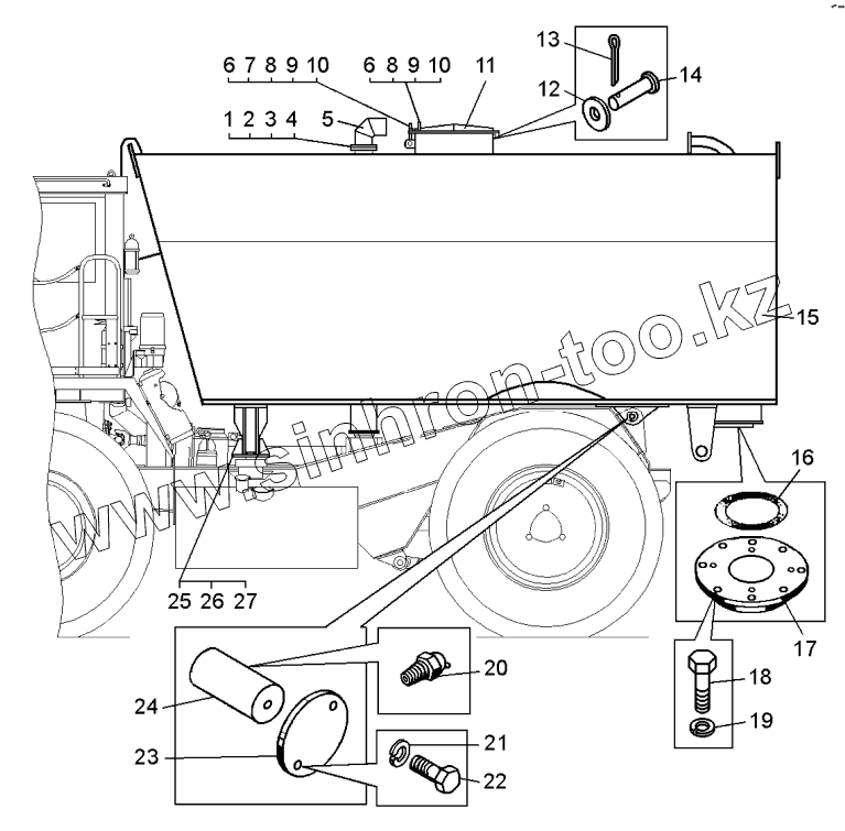 Каталог запасных частей к технике: БелАЗ-76470. Установка цистерны и крышки заливной горловины